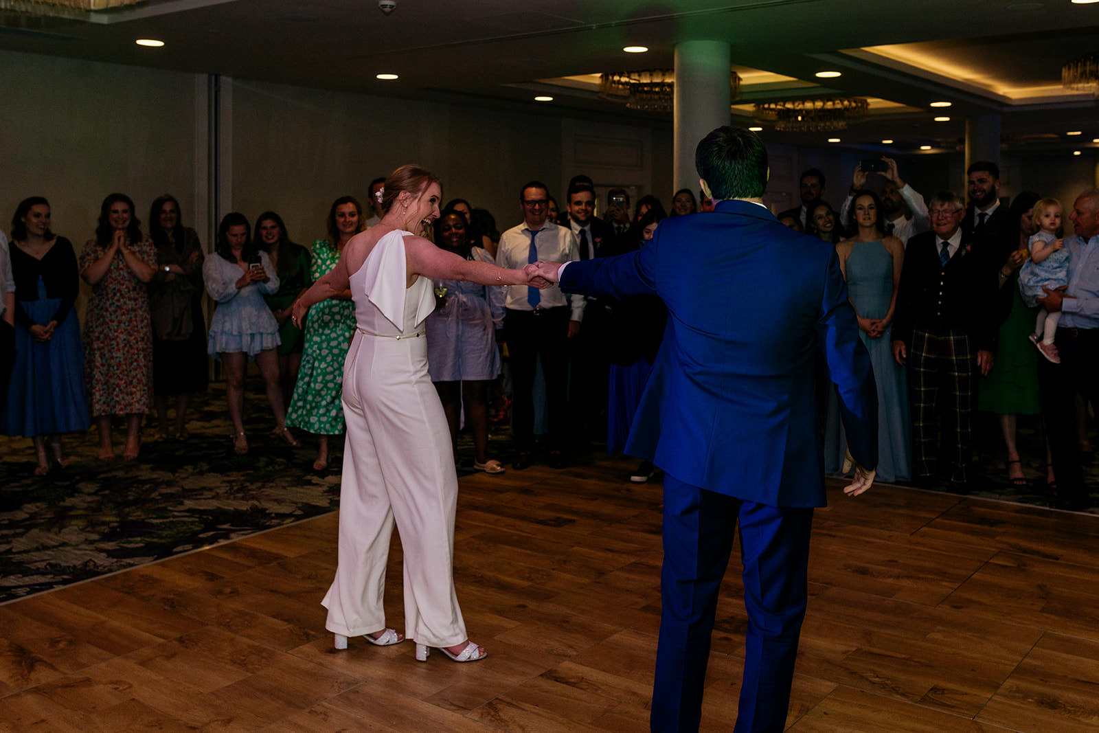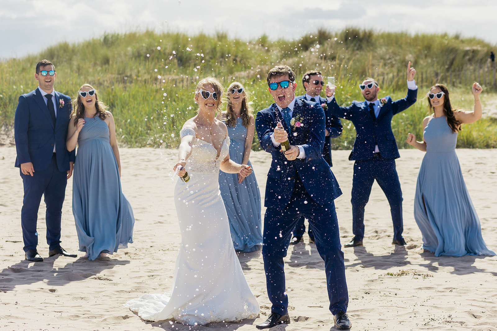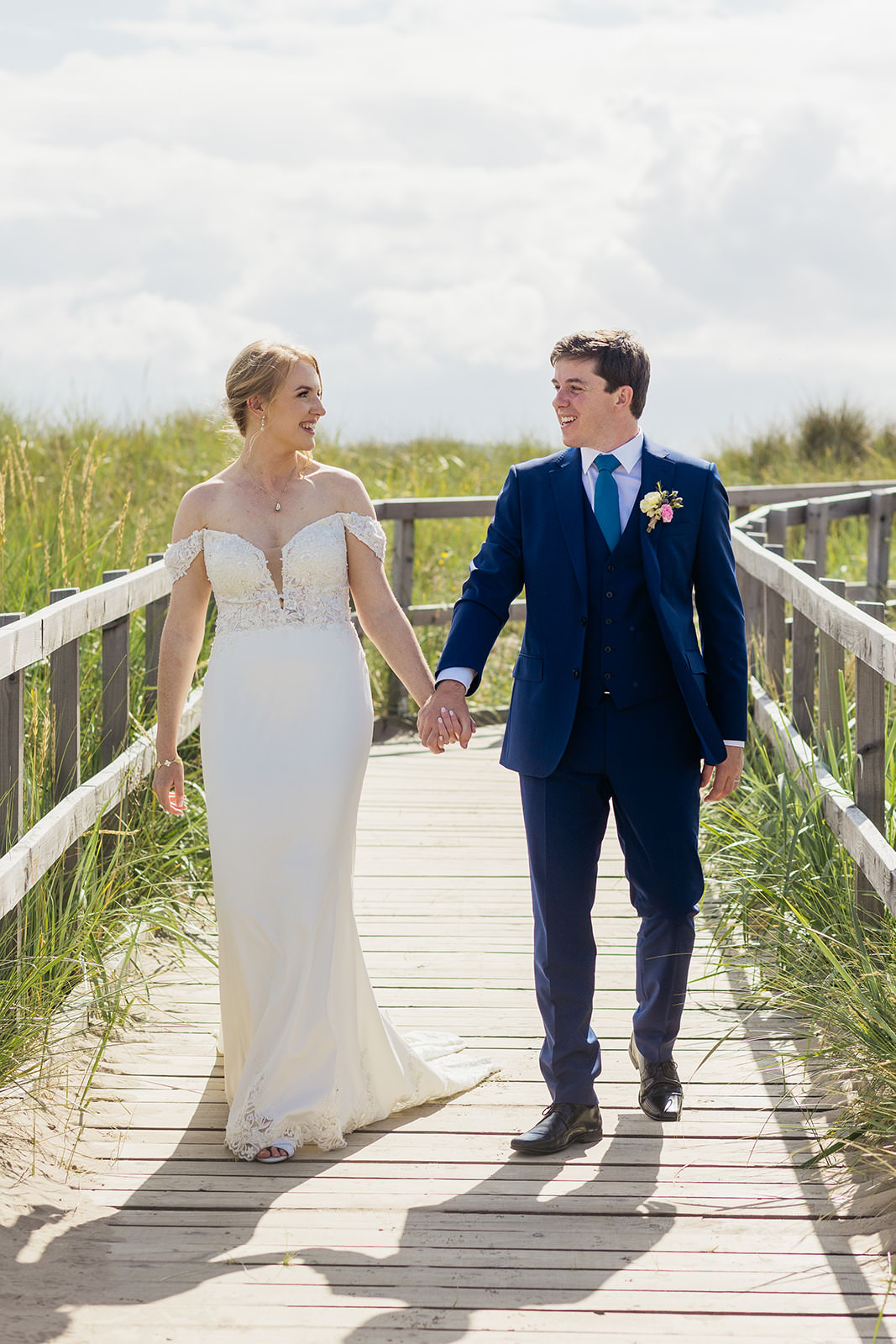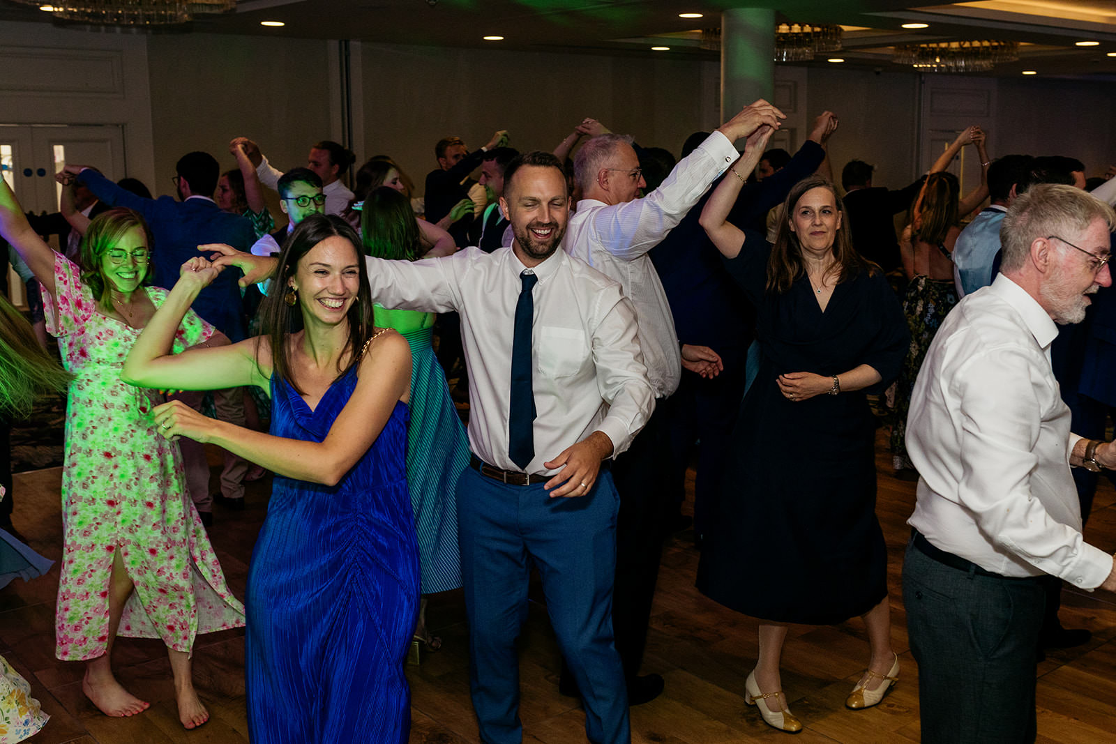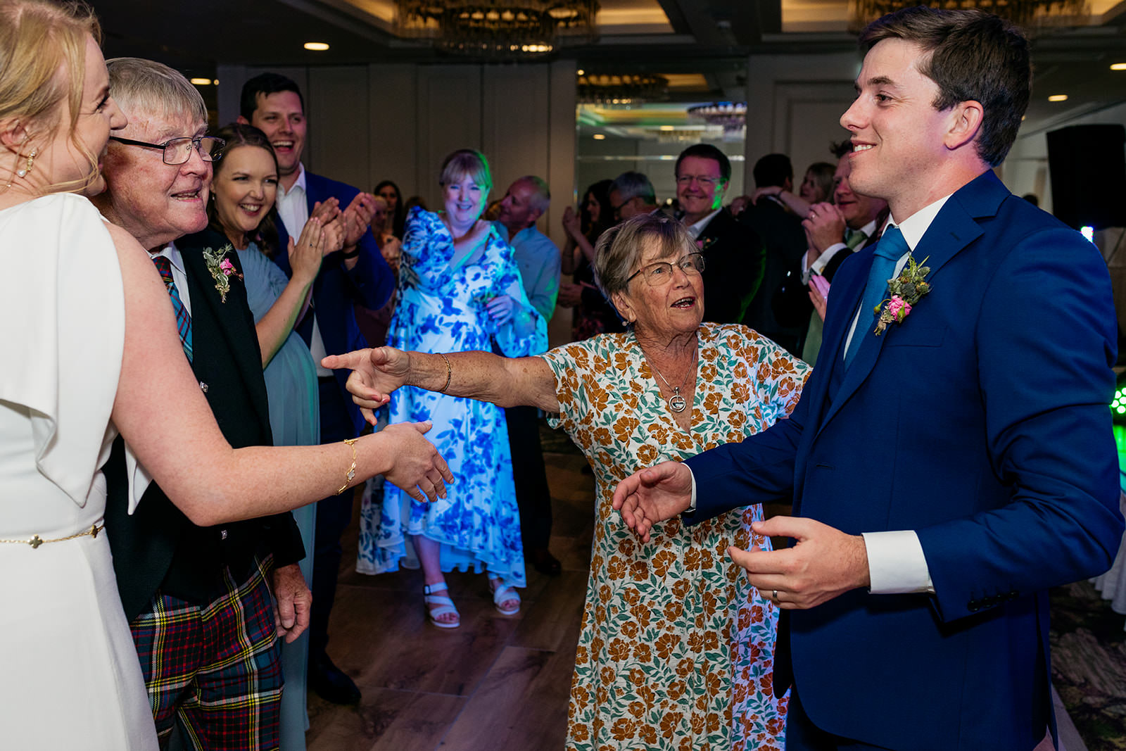 We made sure to take some time to drive down to West Sands for their couple’s session, accompanied by the bridesmaids and groomsmen. We did a few photos on the boardwalk. As soon as we got there, two staff members at Dook came over to give Ben & Chloe a couple of mini prosecco bottles. Such a kind thing to do. We, of course, also headed to the Swilcan Bridge in between play to grab a quick photo. Other honourable mentions should go to their friend Laura for making their cake, as well as It’s No Reel for the fantastic ceilidh music. The Old Course is a perfect venue for a wedding. The conservatory for the ceremony is gorgeous. The Hall of Champions for the speeches and dinner has enough space for all your guests to be up on the dance floor.