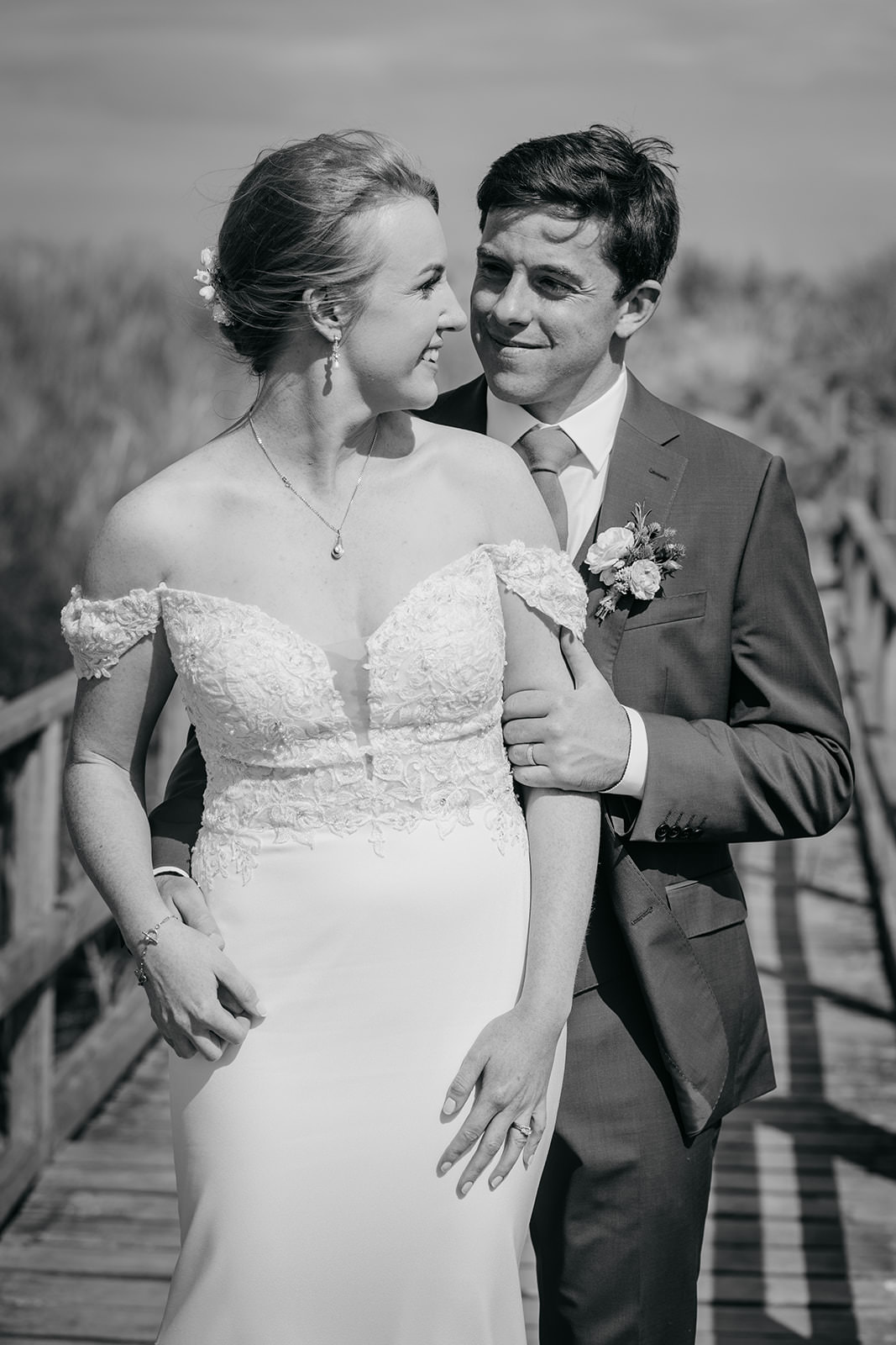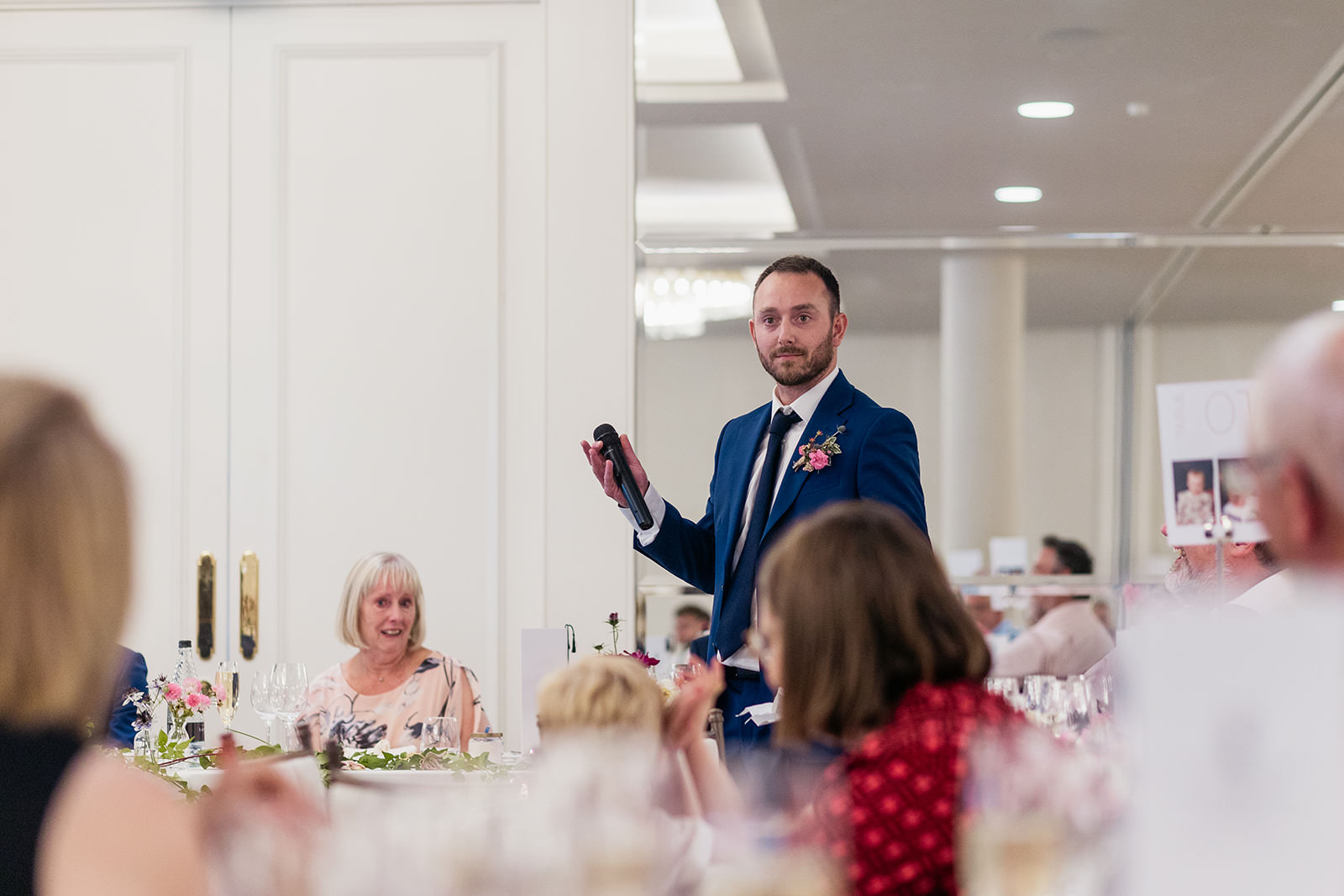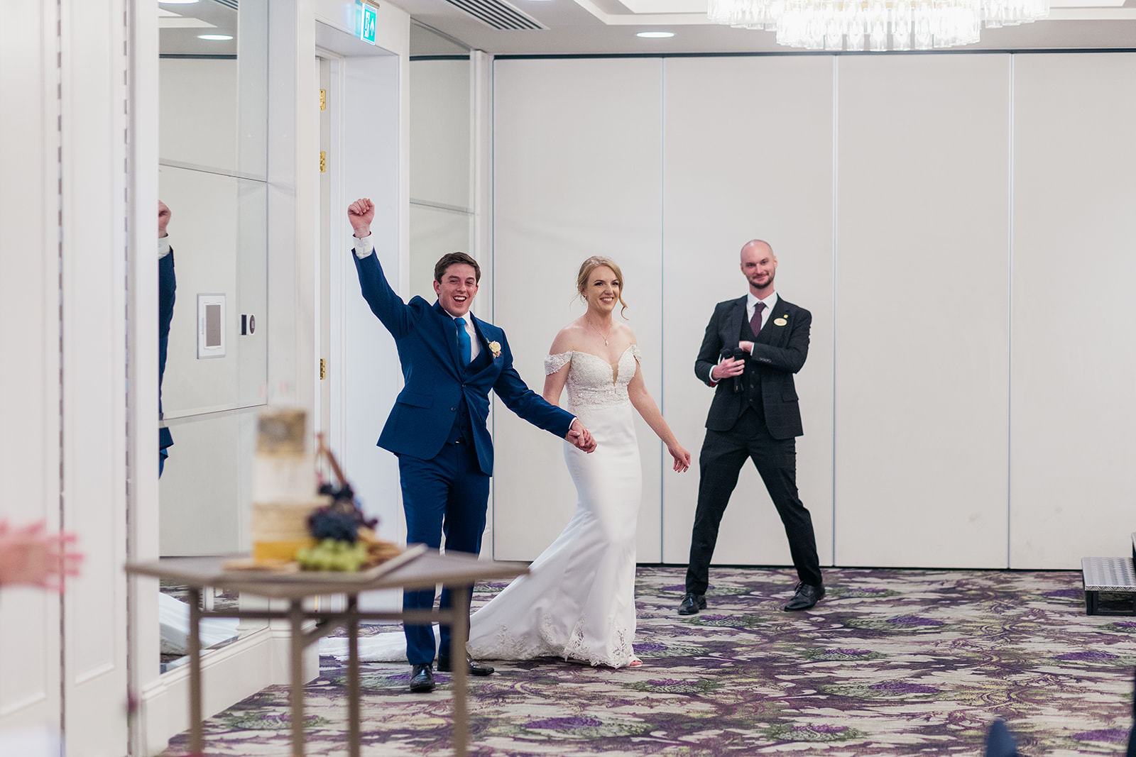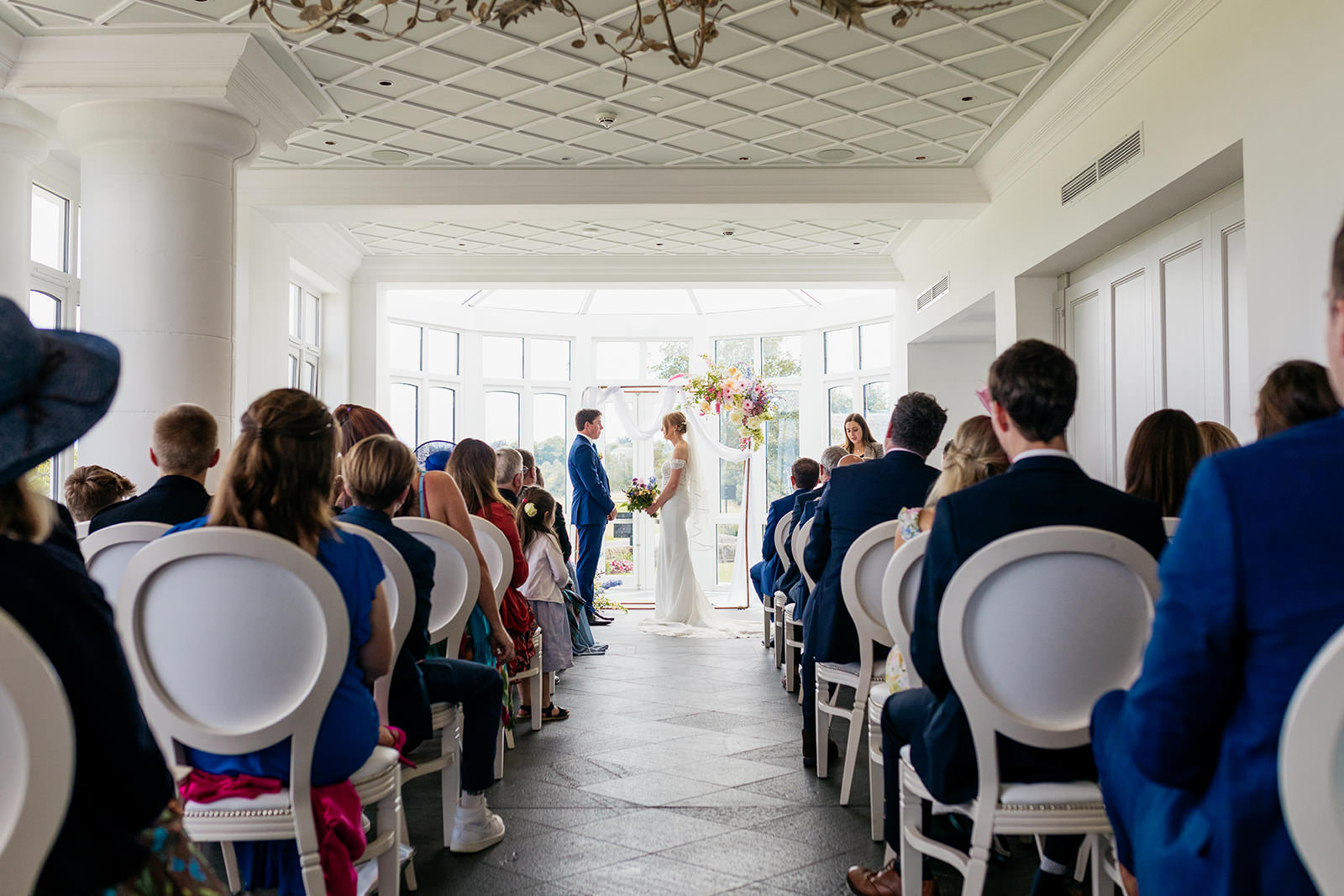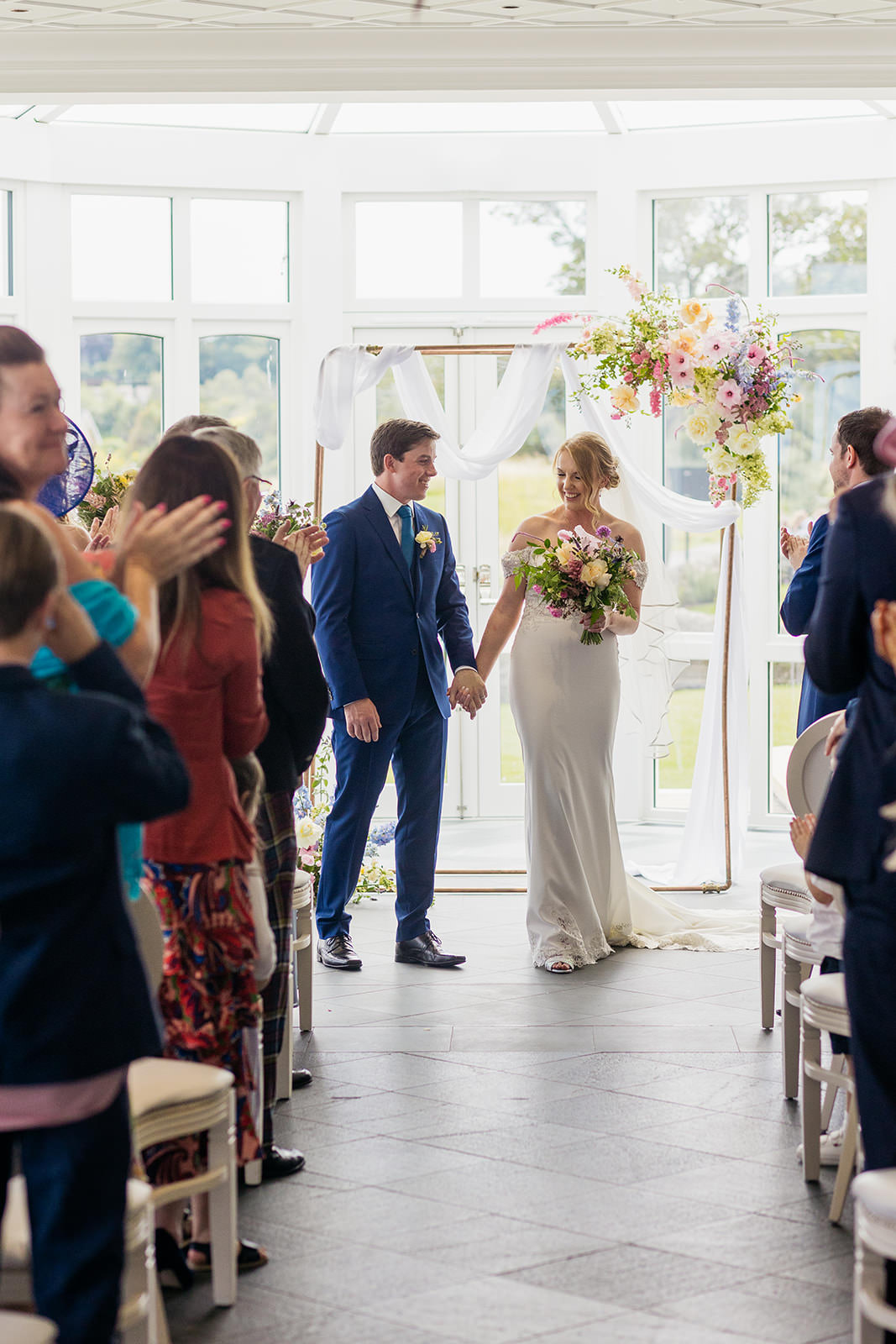 We made sure to take some time to drive down to West Sands for their couple’s session, accompanied by the bridesmaids and groomsmen. We did a few photos on the boardwalk. As soon as we got there, two staff members at Dook came over to give Ben & Chloe a couple of mini prosecco bottles. Such a kind thing to do. We, of course, also headed to the Swilcan Bridge in between play to grab a quick photo. Other honourable mentions should go to their friend Laura for making their cake, as well as It’s No Reel for the fantastic ceilidh music. The Old Course is a perfect venue for a wedding. The conservatory for the ceremony is gorgeous. The Hall of Champions for the speeches and dinner has enough space for all your guests to be up on the dance floor.