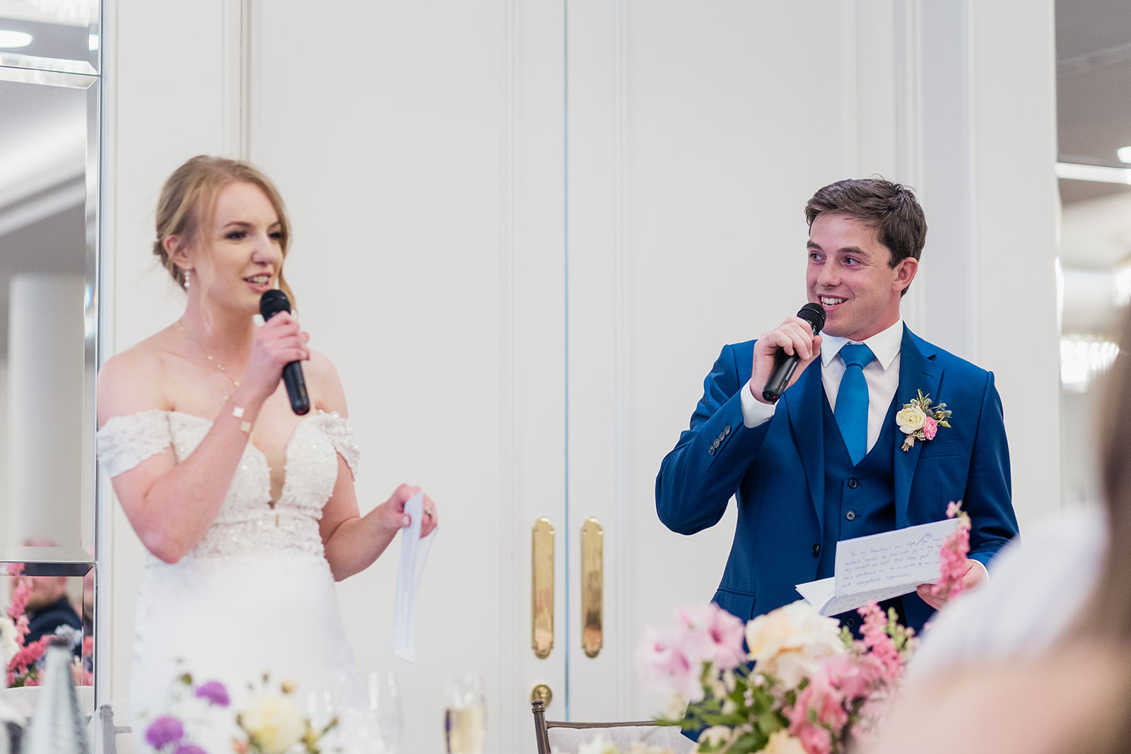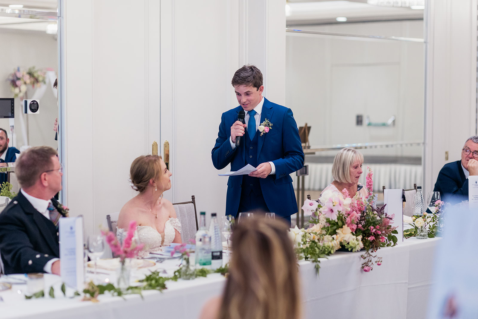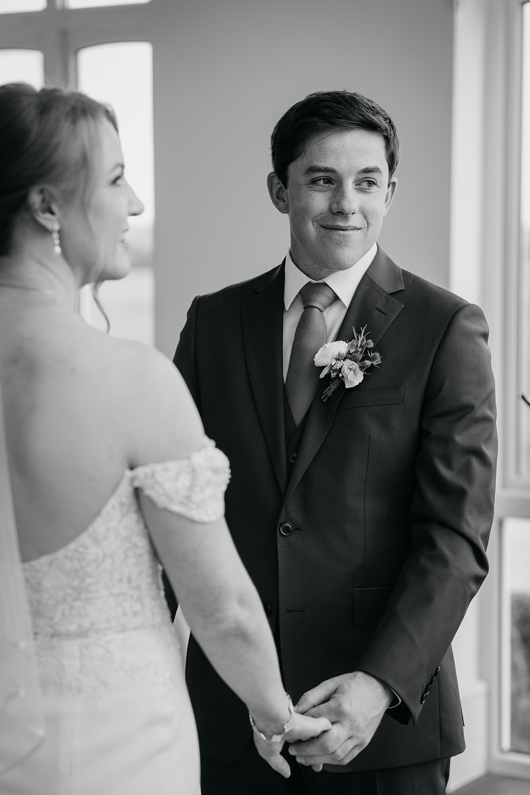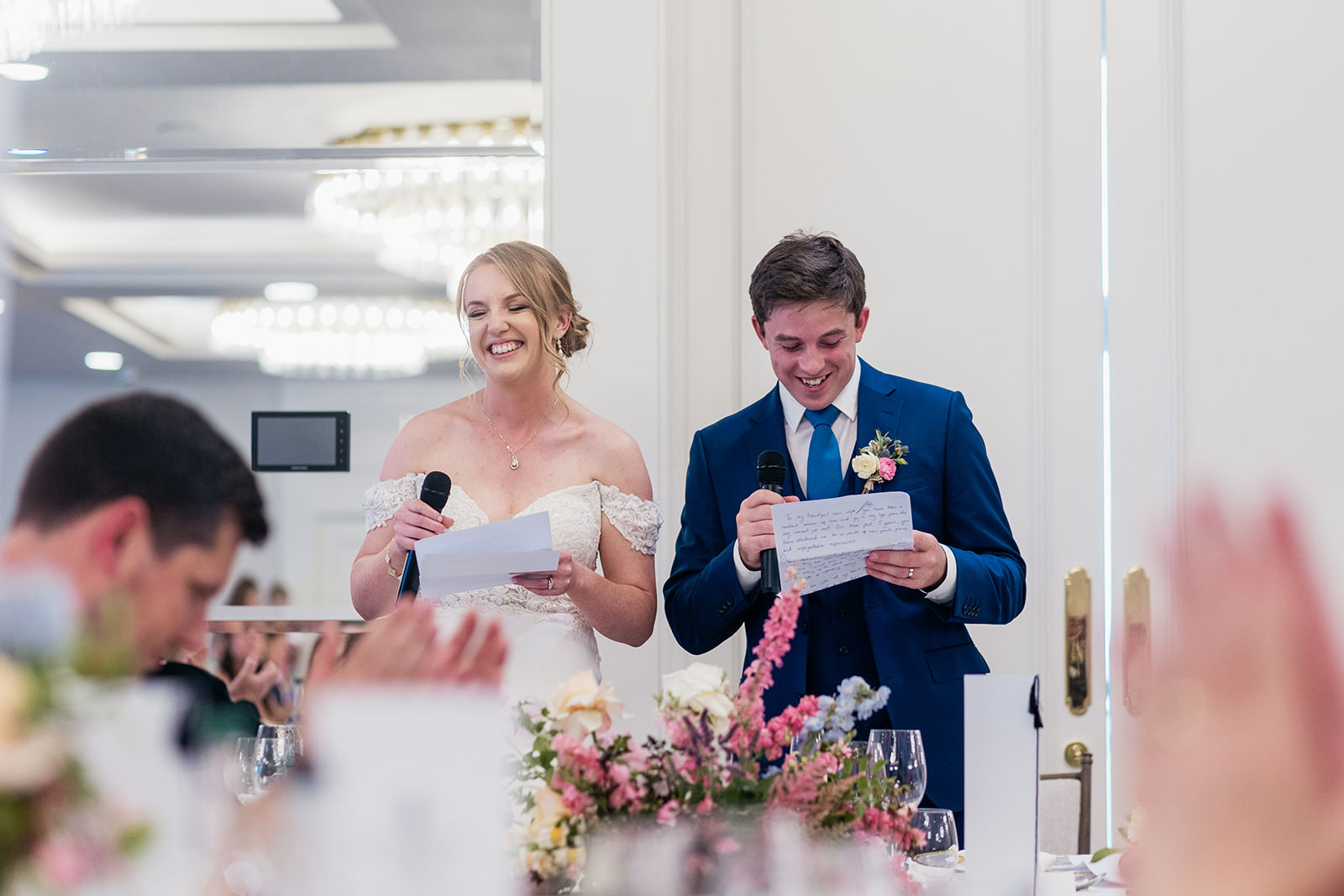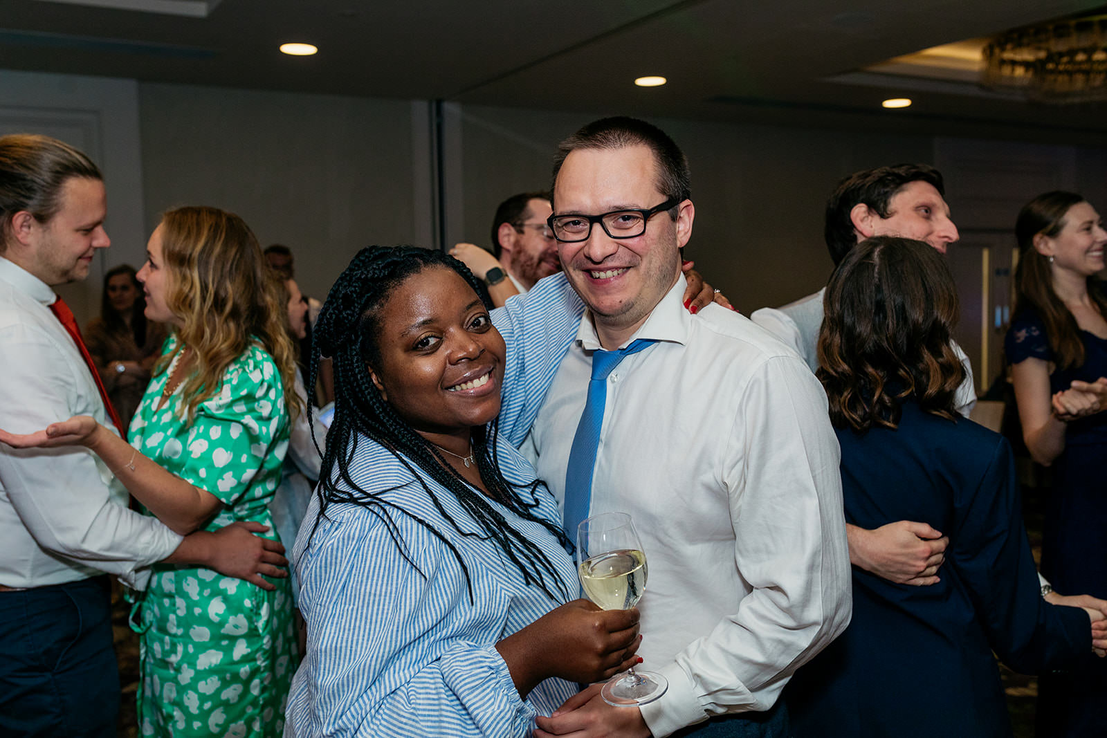 We made sure to take some time to drive down to West Sands for their couple’s session, accompanied by the bridesmaids and groomsmen. We did a few photos on the boardwalk. As soon as we got there, two staff members at Dook came over to give Ben & Chloe a couple of mini prosecco bottles. Such a kind thing to do. We, of course, also headed to the Swilcan Bridge in between play to grab a quick photo. Other honourable mentions should go to their friend Laura for making their cake, as well as It’s No Reel for the fantastic ceilidh music. The Old Course is a perfect venue for a wedding. The conservatory for the ceremony is gorgeous. The Hall of Champions for the speeches and dinner has enough space for all your guests to be up on the dance floor.