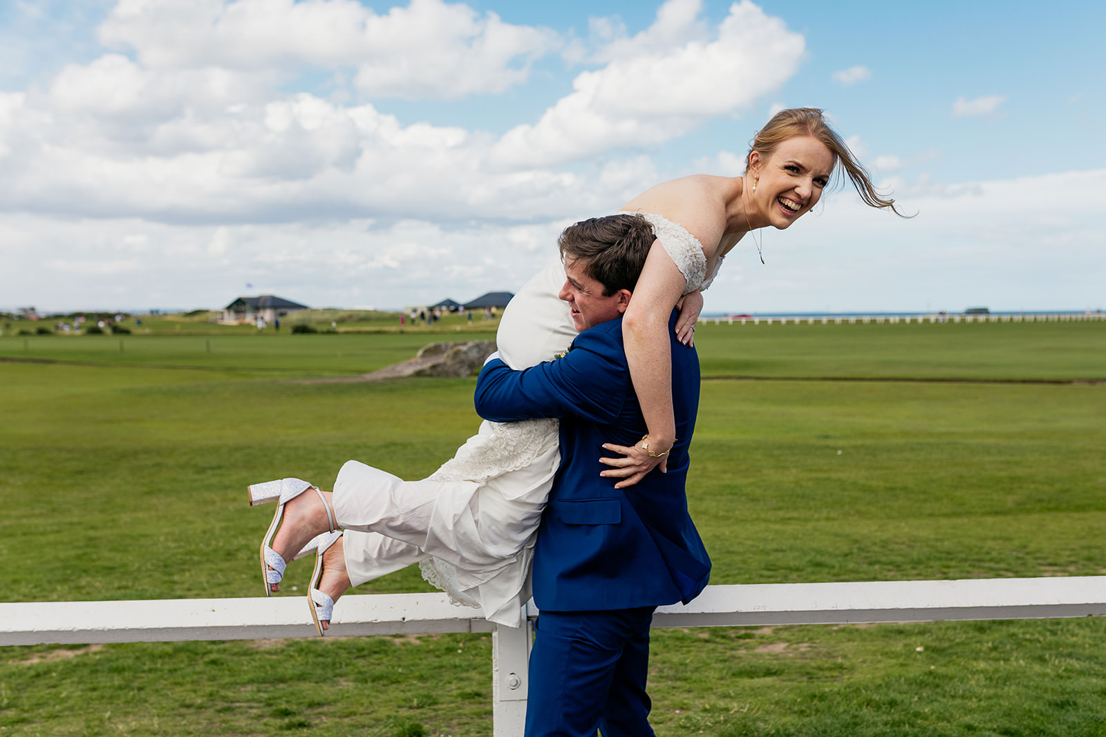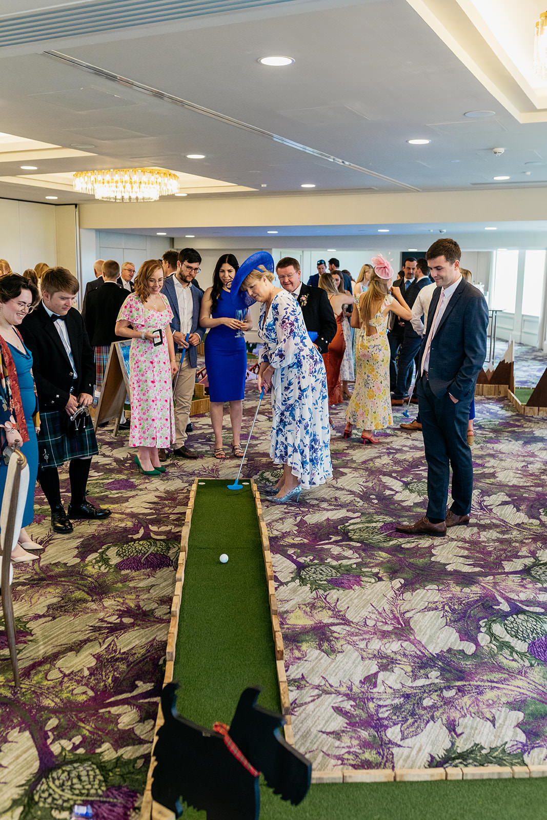 Cut to their wedding at The Old Course Hotel. They chose Nomad Floral to do their floral arrangements. As huge fan’s of golf, they wanted to have something for their guest’s to do during the drinks reception. So it was a no-brainer that they contacted Blown Away who set up a mini golf course! As you can imagine….there ended up being A BIT of competitiveness. Luckily, everyone escaped unscathed.